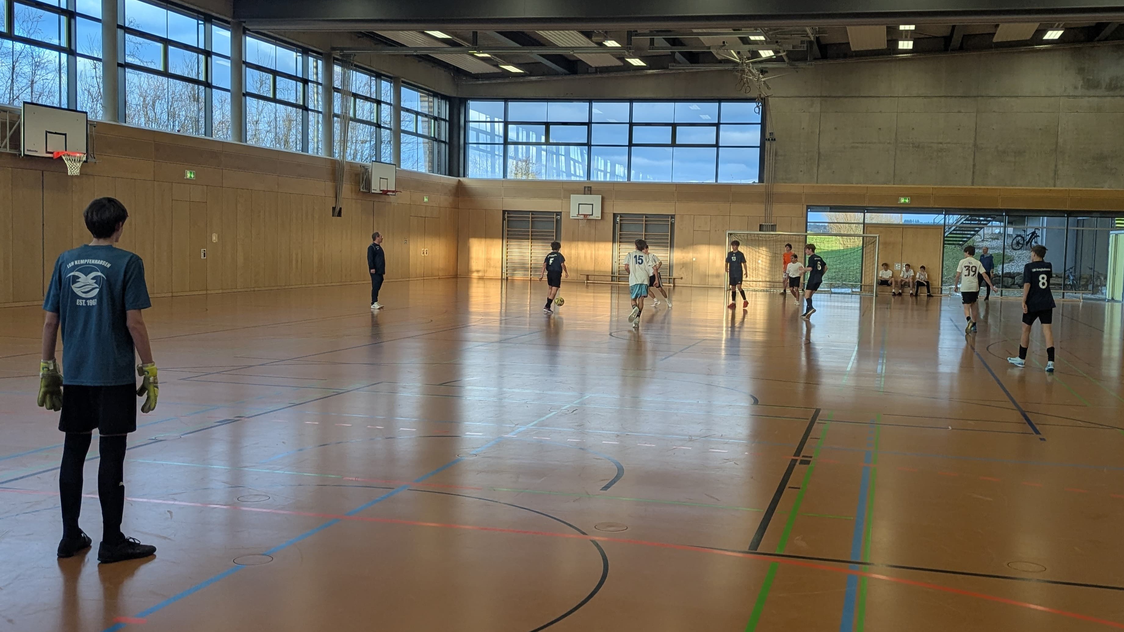Am 13.12. kam das Gymnasium/Schloss Ising zu uns, um gegen unsere Schulmannschaft der fünften Klasse anzutreten. Die Mannschaft der fünften Klasse wird die Schule auch beim deutschlandweiten Schulwettbewerb "Jugend trainiert für Olympia" im März vertreten und somit war das Spiel die optimale Gelegenheit, um sich schonmal darauf vorzubereiten. Da die Isinger sich mit sieben Kids der fünften und sechsten Klasse angemeldet hatten, teilten wir unser Team in ein blaues und ein schwarzes Team auf, sodass jeder der Jungs genug Spielzeit bekommen konnte.