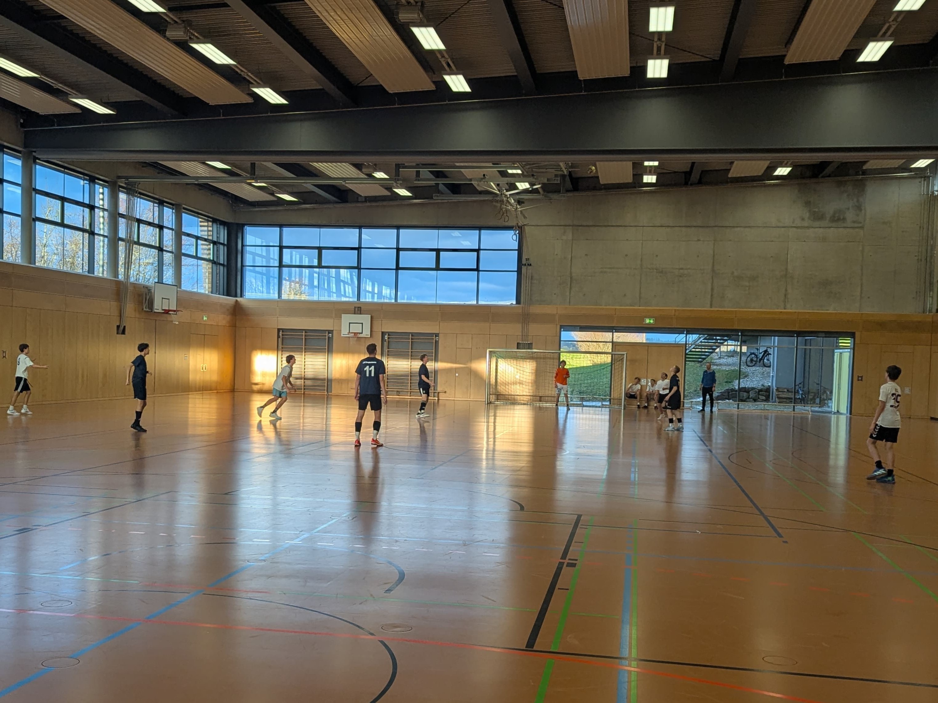Dann konnte es auch schon endlich losgehen! Im 4+1 Modus (Vier Feldspieler, ein Torwart) spielten erst das blaue und danach das schwarze Team 20 Minuten gegen die Schüler von Schloss Ising.