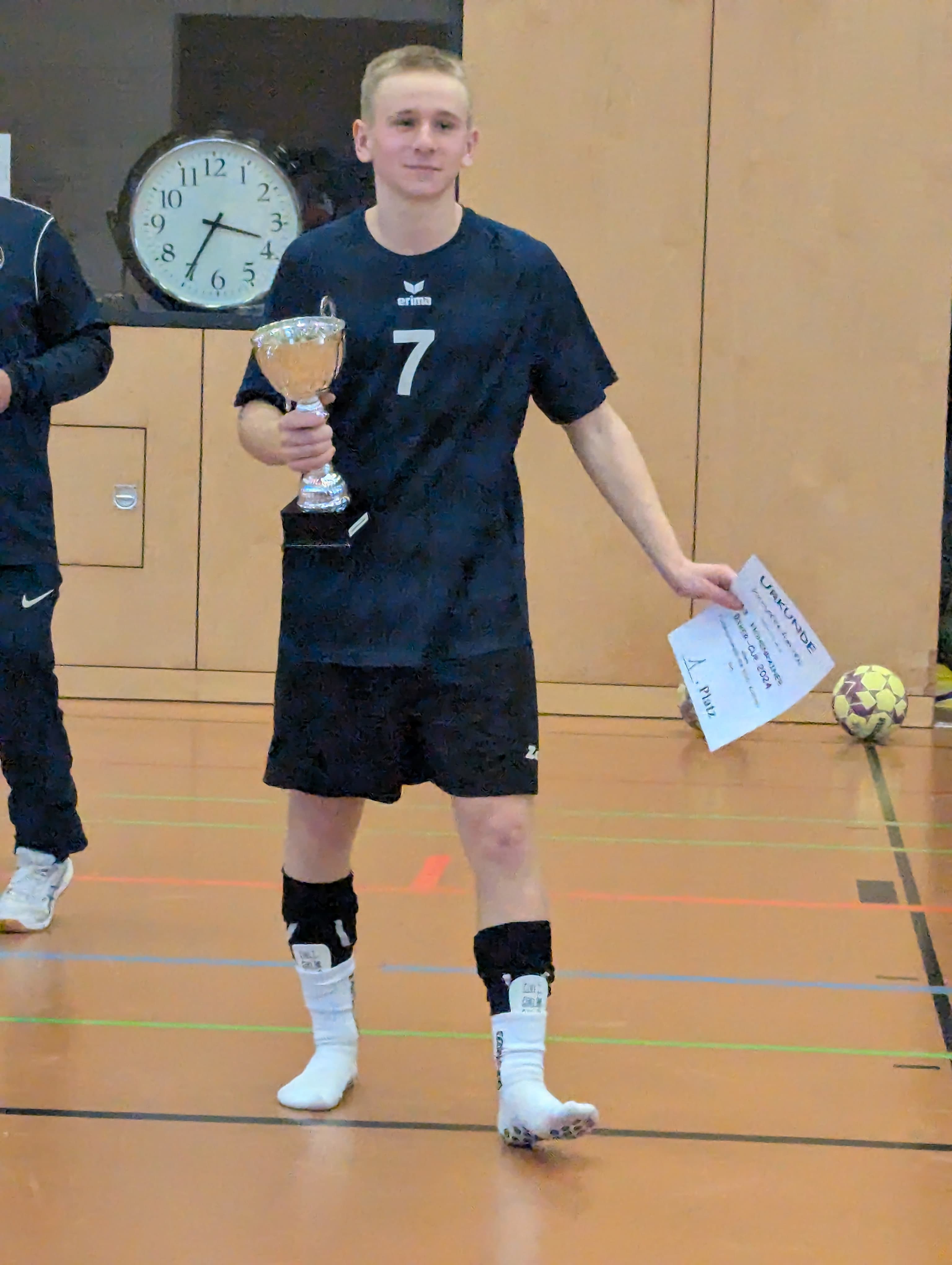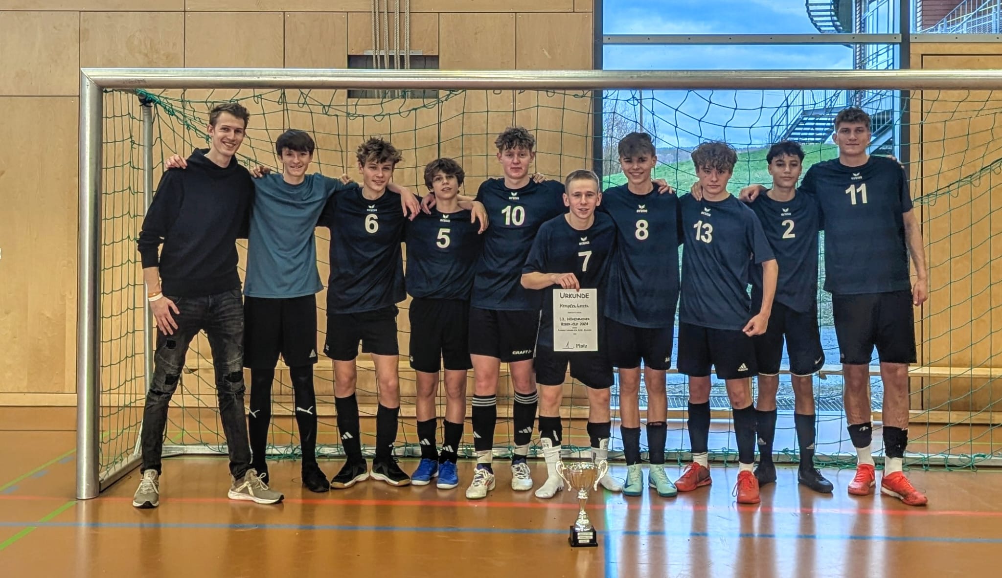 Die Klassen 7+8 spielten eine starke Gruppenphase und standen am Ende punktgleich mit drei Mannschaften. Aufgrund des gewonnenen direkten Vergleichs gegen die Montessorischule Penzberg konnten wir die Gruppenphase als Gruppenzweiter abschließen und uns somit für das Halbfinale qualifizieren. Leider wurde das erst festgestellt, als das Halbfinale schon gespielt war und unsere Mannschaft wurde freundlicherweise angeboten den Platz von Biberkor im Spiel um Platz drei einzunehmen, welches wir am Ende leider unglücklich verloren. Trotz allem ein tolles Turnier mit einem guten vierten Platz!