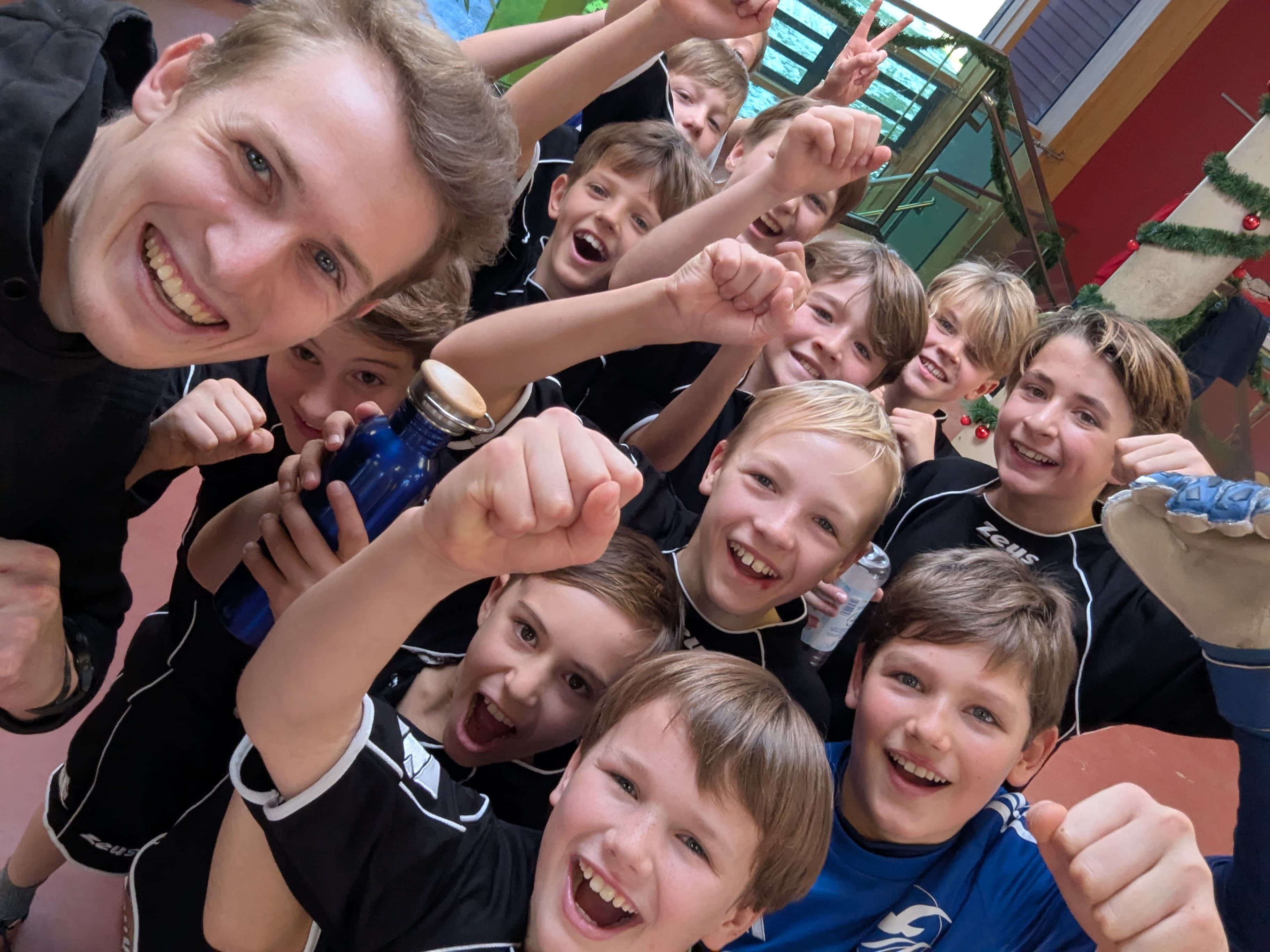 Im Anschluss gab es im Speisesaal noch Brotzeit, welche extra für die Kids hergerichtet worden war, und danach ging es weiter auf den Weihnachtsbasar der Schule, welcher am selben Tag stattfand. Bei dieser Gelegenheit hatte eine Teil unserer Spieler die Möglichkeit unser Schulradio zu besuchen. Im Interview mit Jannik und Mateo von der Radio AG standen die Jungs Rede und Antwort und konnten ausführlich über die Geschehnisse des Tages berichten.