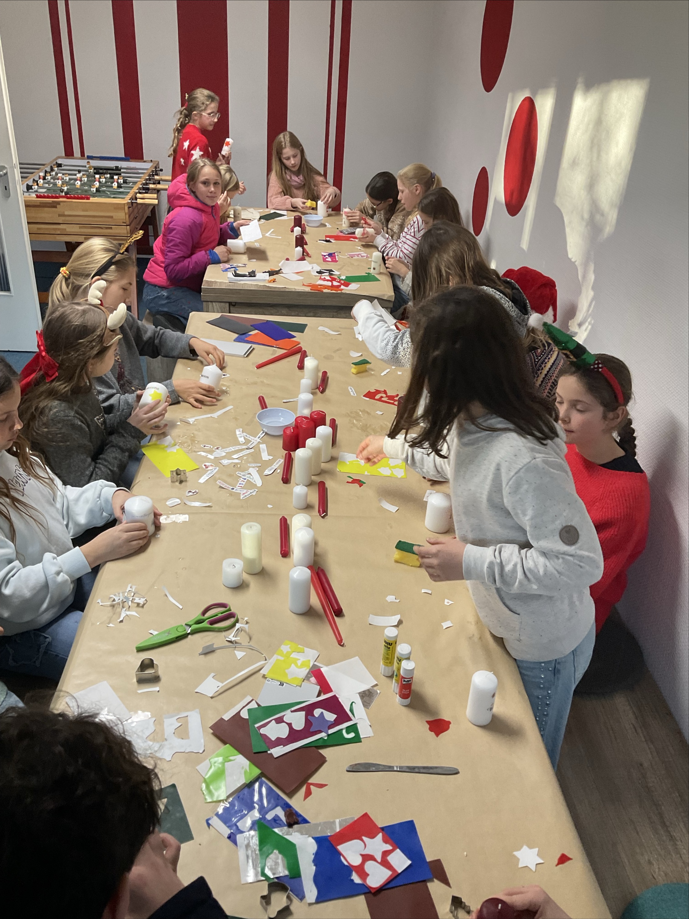 Direkt angrenzend an das live von der Weihnachtsparty sendende Schulradio, konnten die Schülerinnen und Schüler hier Kerzen basteln und verzieren.
