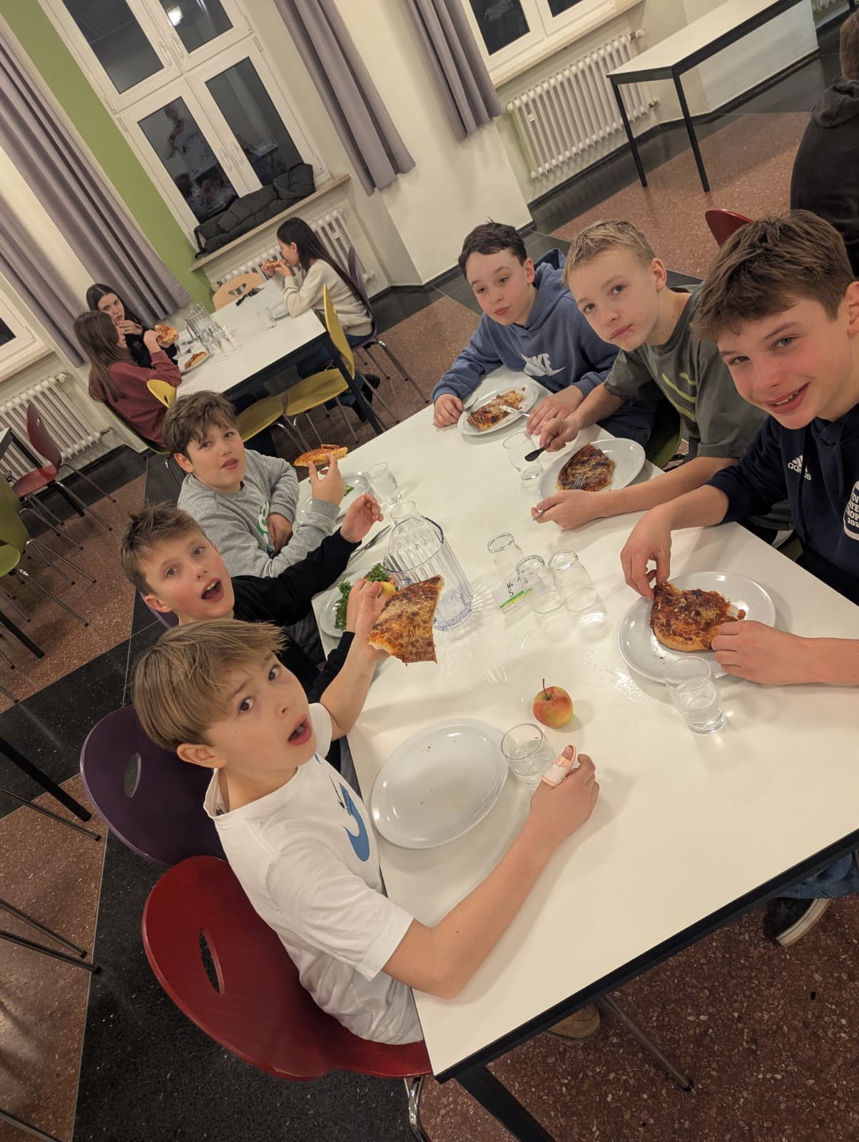 Anschließend gab es zum Abendessen leckere Pizza im Speisesaal und im Anschluss einen Filmabend im Internatsbereich.