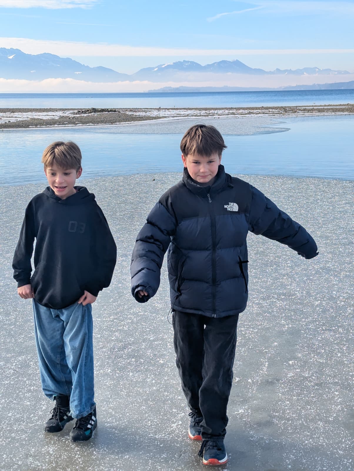 Der nächste Tag startete mit Frühstück im Speisesaal und einer Schneewanderung am See entlang Richtung Bahnhof.