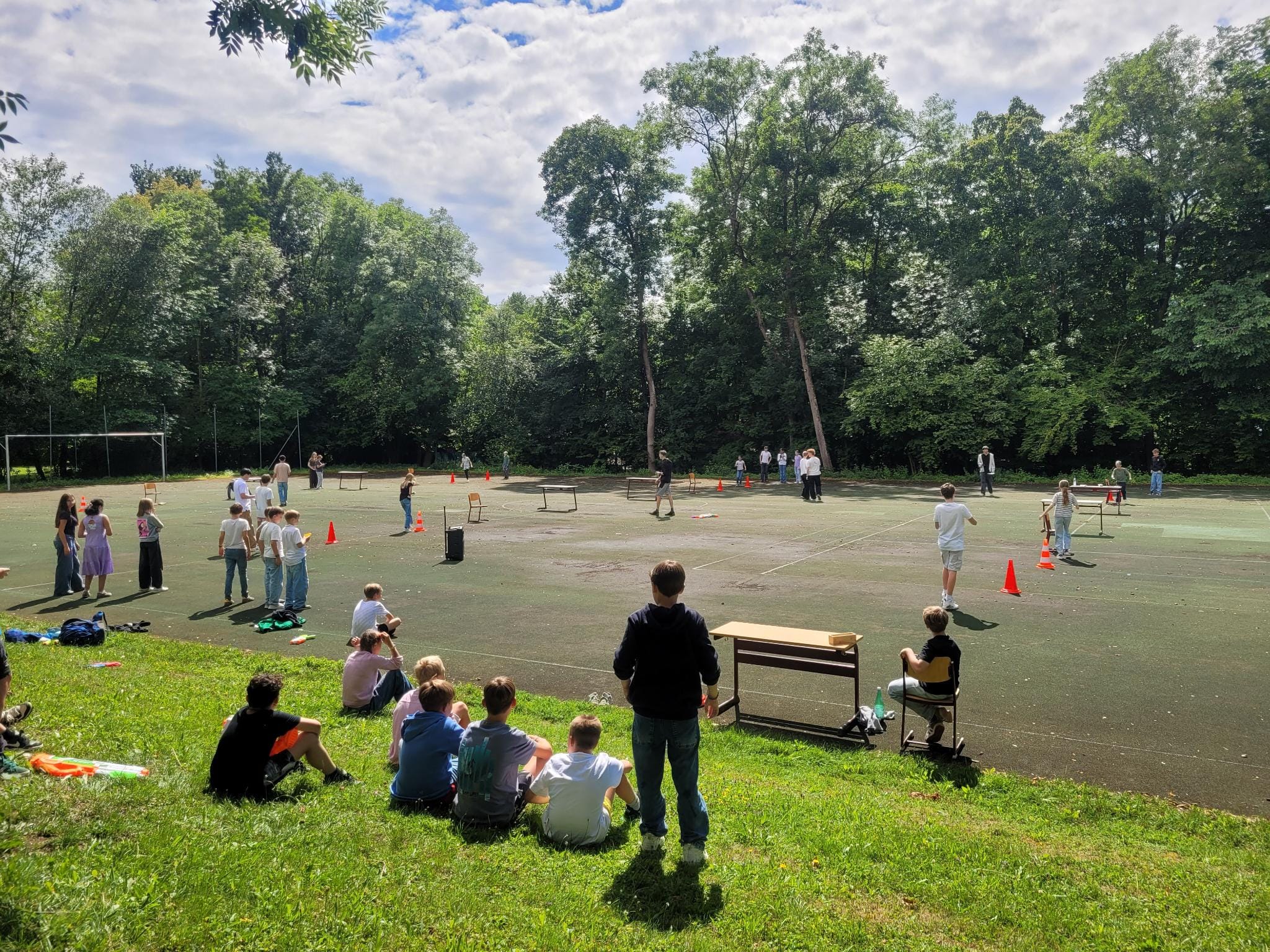 Bestaunt haben wir nicht nur die großartige Stimmung, sondern auch die Gegner, die wegen ihrer Körperhöhe eher den Eindruck von 7 oder 8Klässlern hinterließen. „Keine Sorge - sie sind jeweils eine Klasse höher“ versicherte uns Dirk, der Organisationschef.