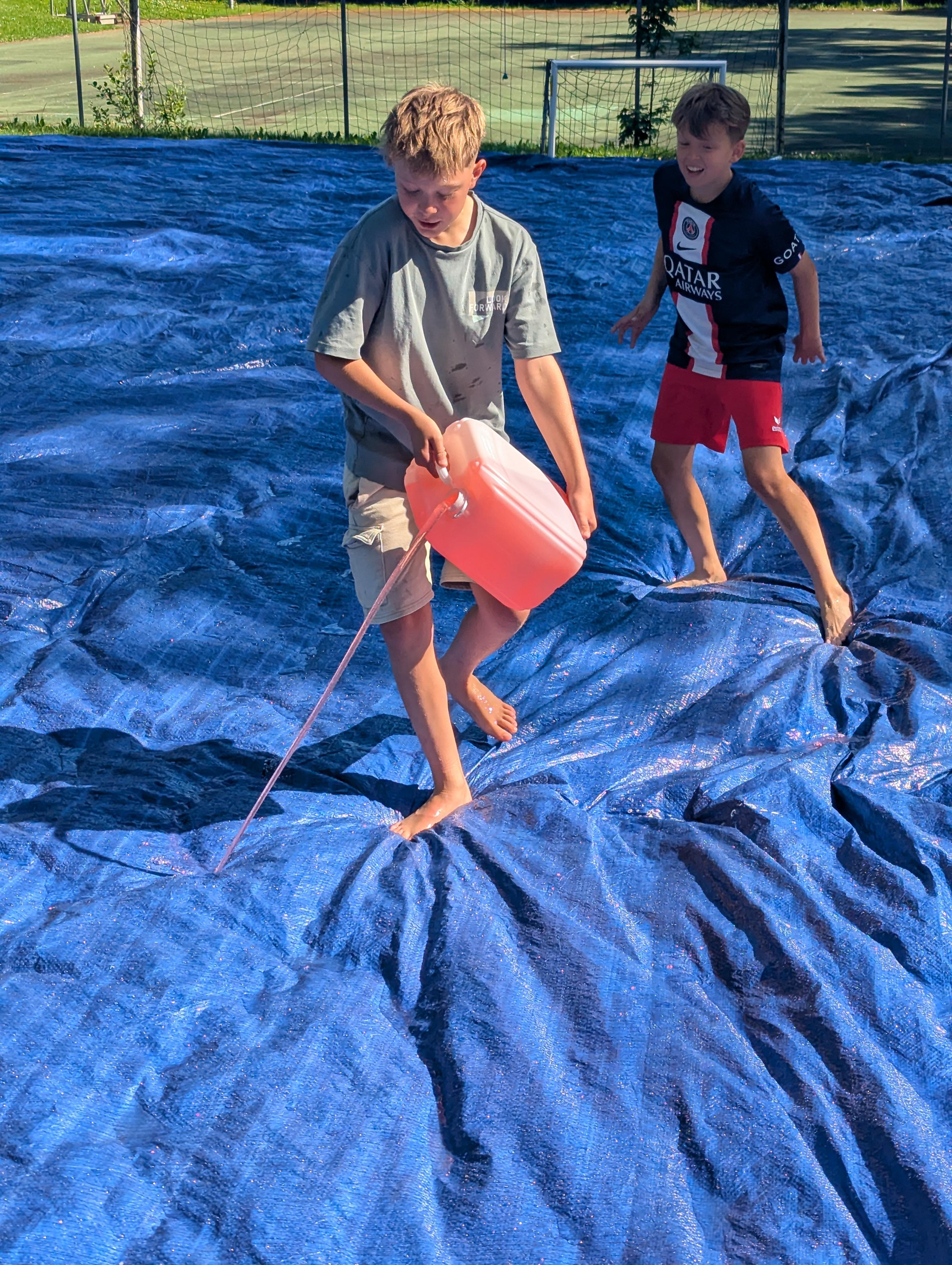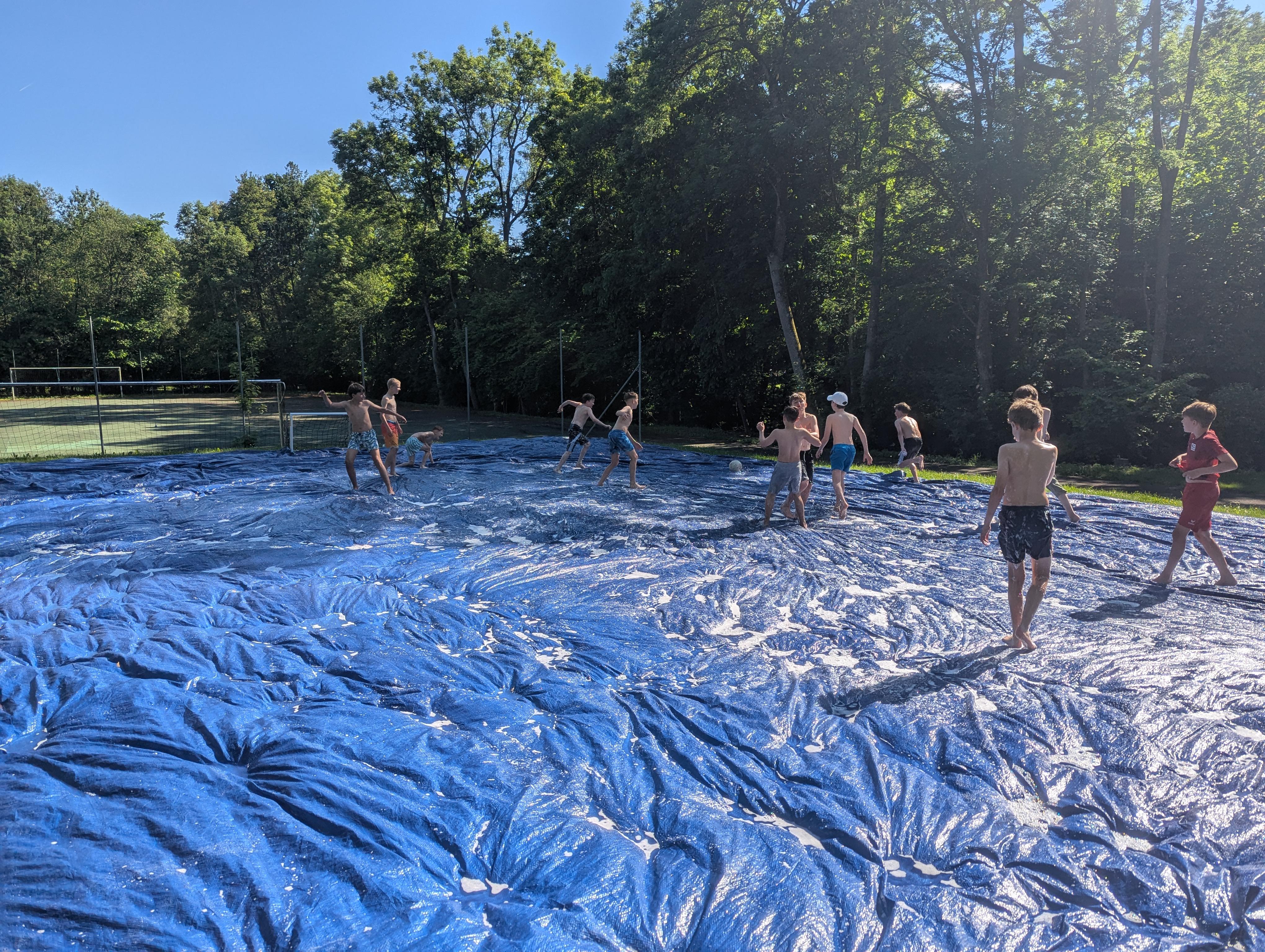 Bei 28° und bestem Wetter konnten die Jungs in verschiedenen Fußballminispielen gegeneinander antreten. Highlight des ganzen war natürlich das große Slip-and-slide-fußball Duell, welches nur von einer kurzen Eispause unterbrochen wurde.