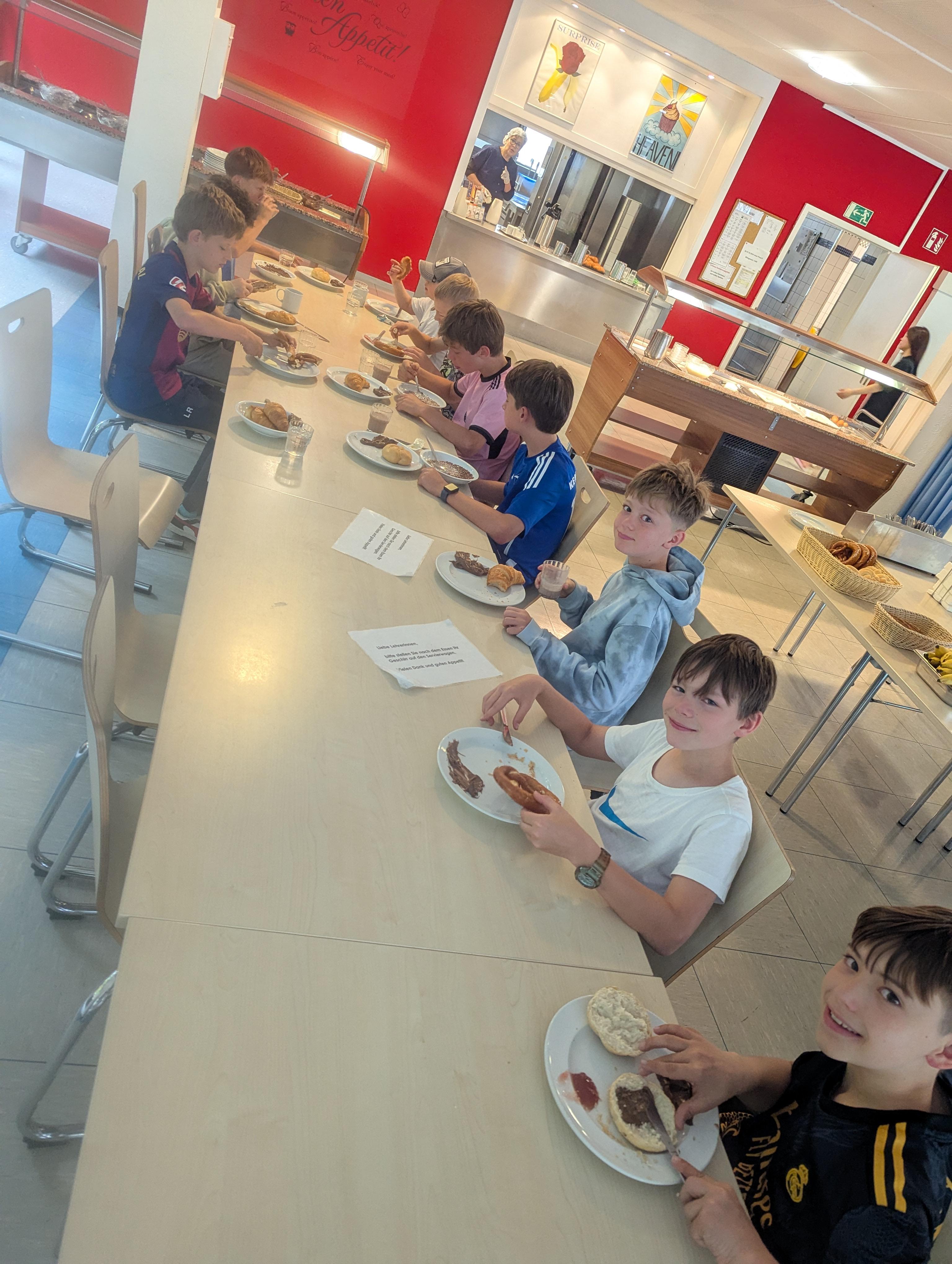 Liebevoll zubereiteter Kuchen und kühle Getränke waren schon mal die Einstimmung für das anschließende gemeinsame Abendessen mit den Mannschaften und allen 150 Internatsschülern.